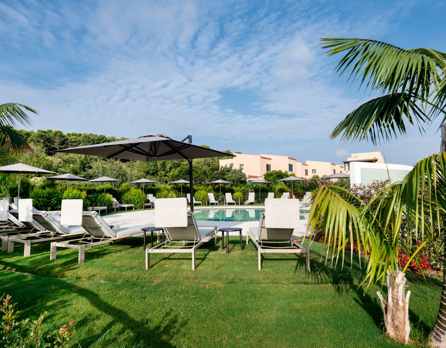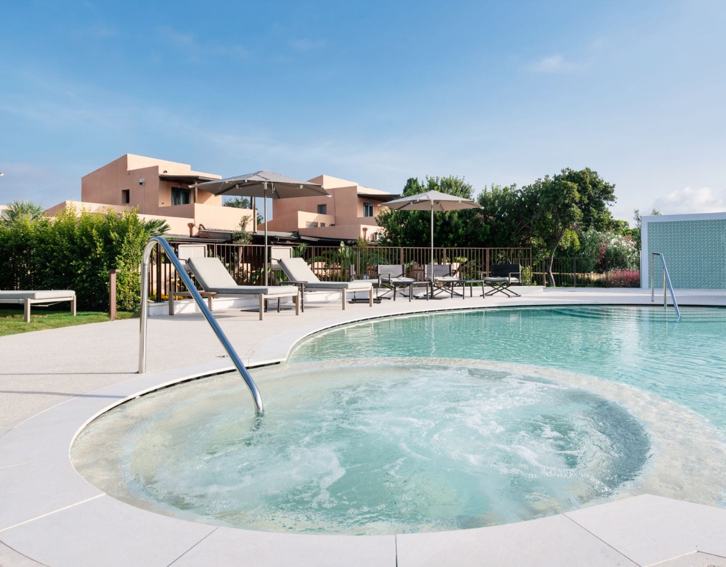 VOI Tanka Village overlooks a wide beach of fine white sand, among the most beautiful in Italy. The distance of the rooms from the beach varies according to the type chosen: Monte Garden are between 600 and 800 meters; Monte Superior between 400 and 600 meters; Casbah Standard between 300 and 600 meters; Casbah Superior between 200 and 500 meters; Domus Standard, Domus Junior Suite and Dimora Family Apartment around 500 meters; Deluxe Double and Deluxe Junior Suite between 200 and 300 meters; and Suite Villas around 300 meters. There is a free train on the property that runs around the perimeter of the resort and the main avenues to the beach throughout the day.