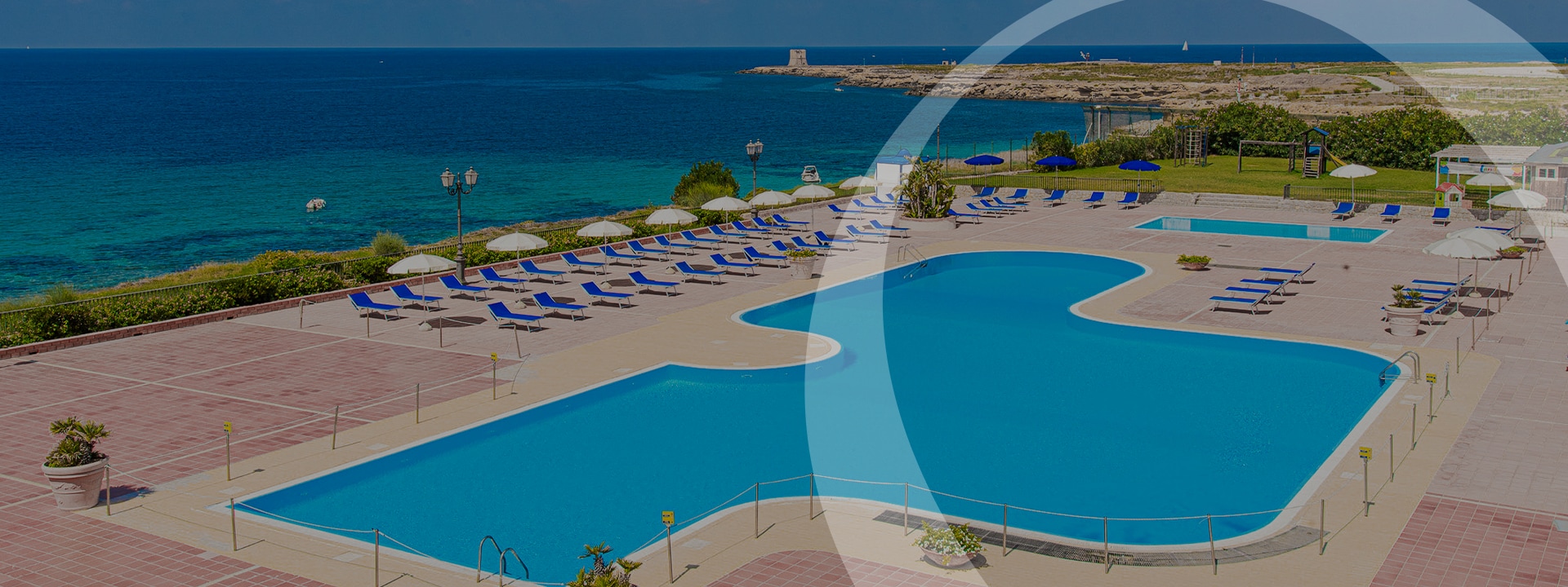 Gli ombrelloni e i lettini sono disponibili fino ad esaurimento. La totalità delle postazioni soddisfa il numero delle camere del resort soltanto includendo anche le postazioni nelle piscine.